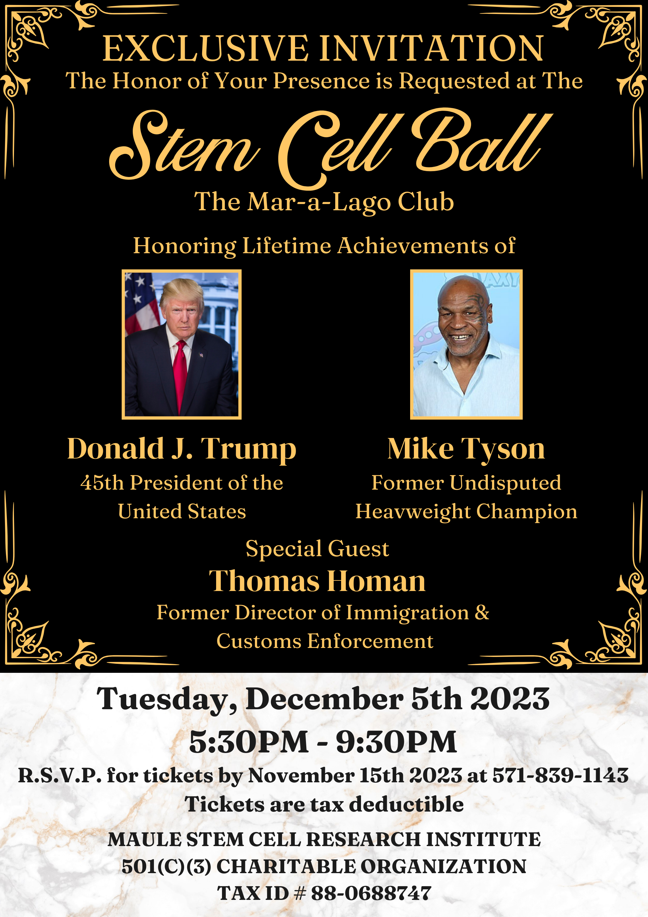 America First Warrior Package – Stem Cell Research Gala at Mar-a-Lago – Dec 6, 2023